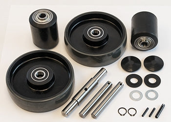 Complete Wheel Kit Includes (2) Ultra-Poly (70D) Load Wheel Assemblies (2.9 Diameter) & (2) Poly Steer Wheel Assemblies with Bearings